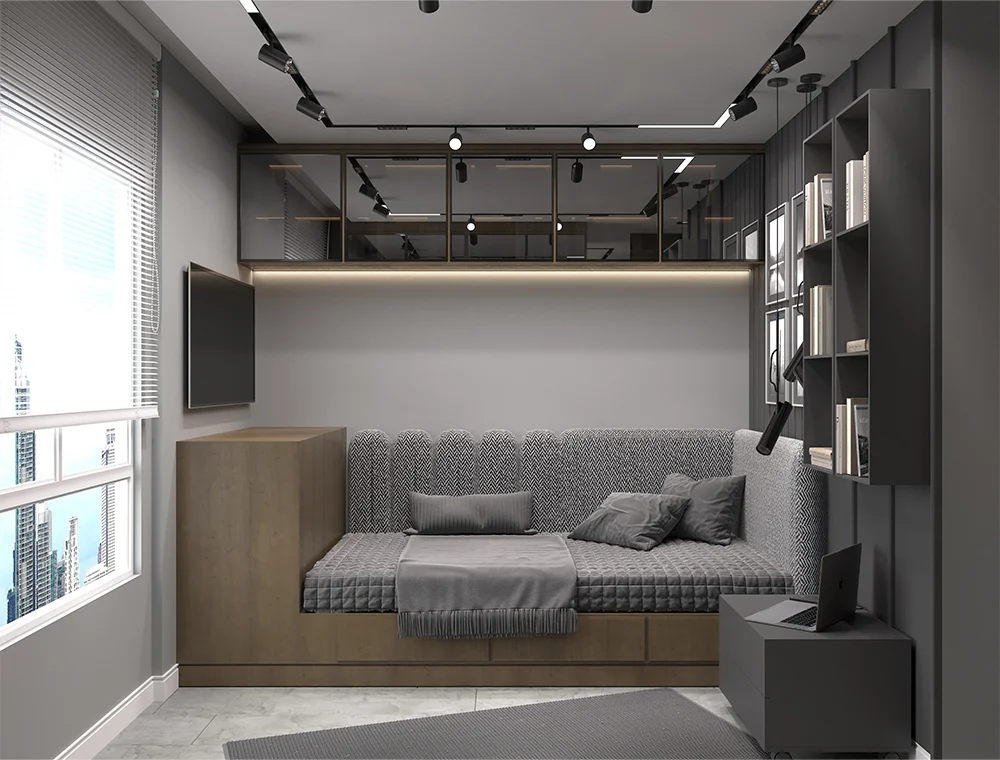E.F. Konutu’nun çocuk odası tasarımında, çocukların hayal gücünü besleyen, eğlenceli ve fonksiyonel bir alan yarattık. Renk uyumu, ergonomik mobilyalar ve akıllı depolama çözümleriyle hem keyifli hem de düzenli bir yaşam alanı oluşturduk. Çocukların enerjisine uyum sağlayan tasarım detayları ile konfor ve estetik bir arada sunuluyor.