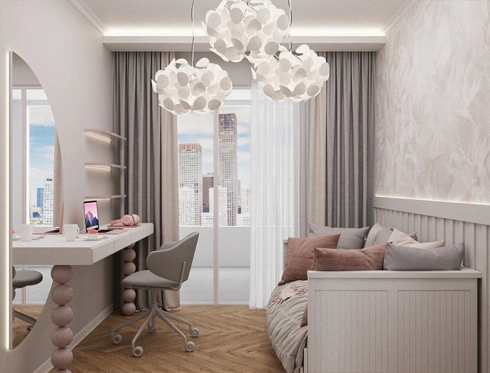 Ergonomik mobilyalar ve güvenli tasarım unsurları ile çocukların ihtiyaçlarına uygun çözümler sunduk. Aynı zamanda odanın düzenini bozmadan, depolama alanları ve fonksiyonel mobilyalar ile her şeyin yerli yerinde olmasını sağladık. Doğal ışığın kullanımı, renkli dekorasyon detayları ve çocukların gelişimlerine destek olacak eğitici aksesuarlarla tasarımı zenginleştirdik.