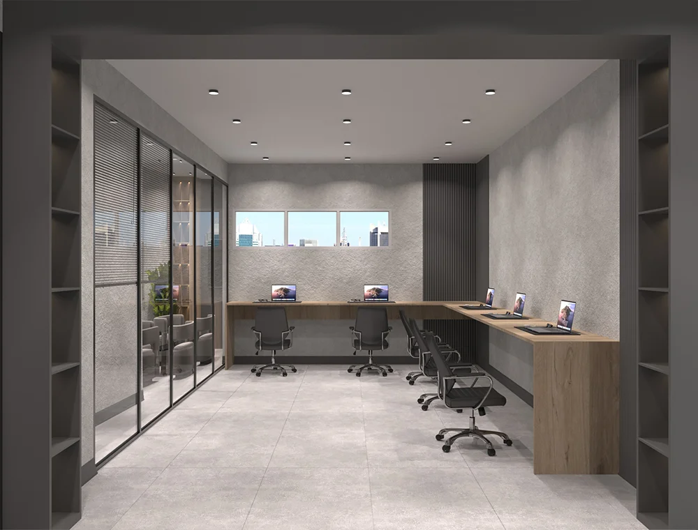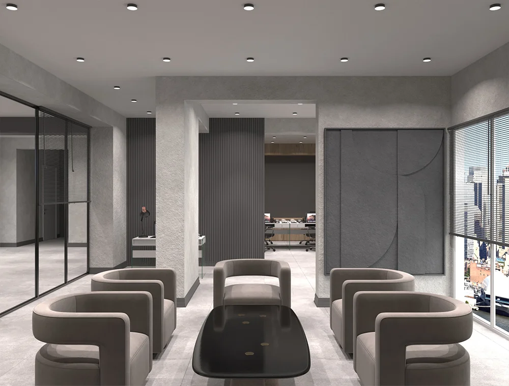 G.E. Ofis Tasarımı, iş yerinizin verimliliğini artırmayı ve çalışanlarınız için ilham verici bir ortam oluşturmayı amaçlayan modern bir tasarımdır. İşlevselliği ve estetiği bir araya getirerek, ofis alanınızı hem şık hem de verimli hale getiriyoruz. Çalışanların motivasyonunu ve konforunu ön planda tutarak, modern çizgilerle tasarlanmış bu ofis, başarılı bir iş ortamı için ihtiyaç duyduğunuz her detayı barındırıyor.