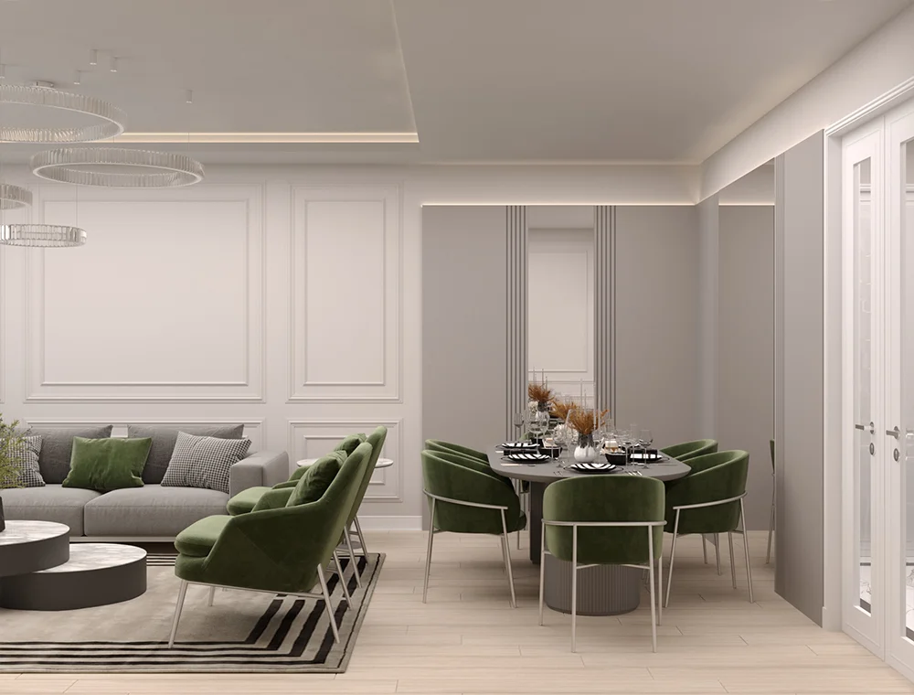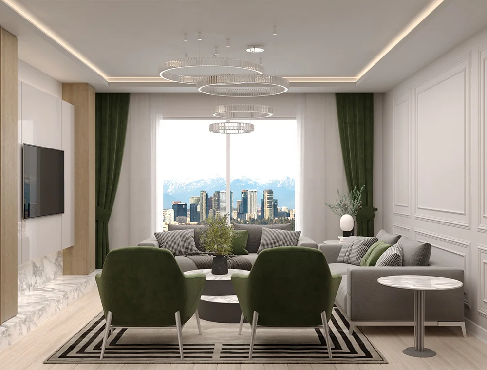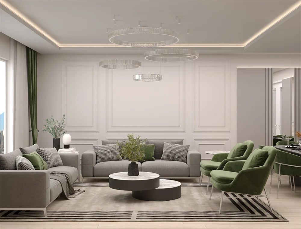 Geniş ve ferah bir atmosfer yaratmak için doğal ışık kullanımına önem verdik, dengeli renk ve malzeme seçimleriyle sıcak ve davetkâr bir ortam oluşturduk. Ergonomik mobilyalar, akıllı depolama çözümleri ve modern aydınlatmalarla yaşam alanınızı daha kullanışlı hale getirdik.