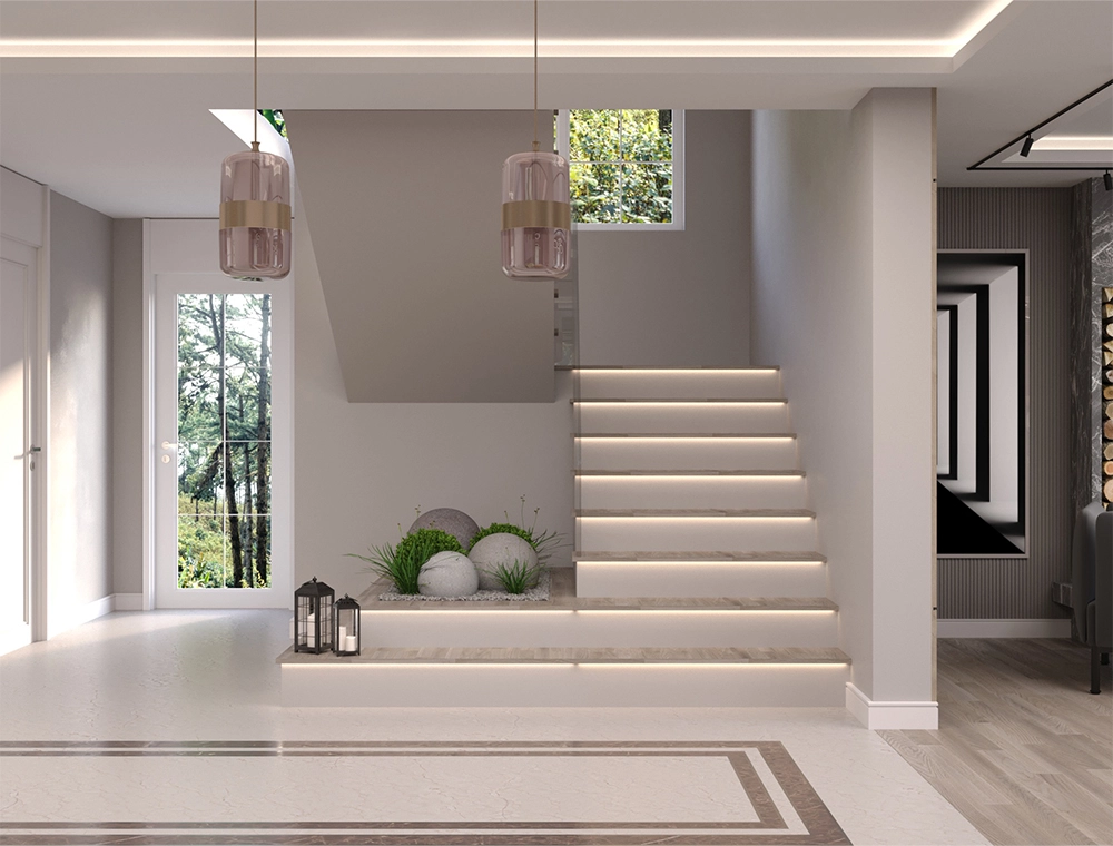 Alanı daha geniş göstermek için doğru aydınlatmalar seçiyor, sıcak ve davetkâr bir atmosfer oluşturuyoruz.