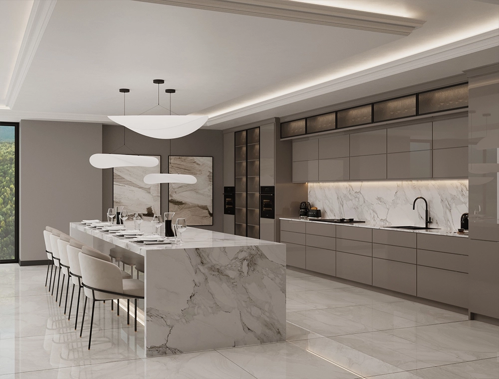 S.Y. mutfak tasarımı, estetik ve işlevselliği bir araya getirerek modern yaşamın ihtiyaçlarına uygun şekilde tasarlandı. Ergonomik yerleşim planı, akıllı depolama çözümleri ve yenilikçi mutfak teknolojileriyle hem konforlu hem de verimli bir alan oluşturuldu.