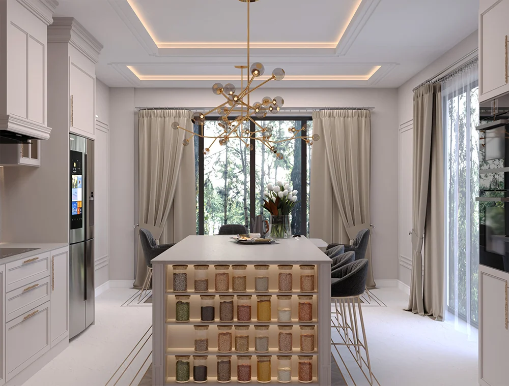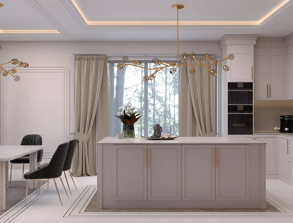 Mutfak tasarımında ergonomi, depolama çözümleri ve doğru aydınlatma gibi detaylara büyük önem veriyoruz. Fonksiyonel mobilyalar, şık dekoratif unsurlar ve kaliteli malzemelerle, mutfak alanınızı hem estetik hem de kullanışlı hale getiriyoruz.